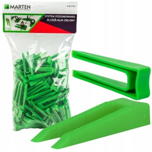 Kliny są uzupełnieniem zestawu do poziomowania Marten, kliny o dwóch nóżkach z ząbkami poziomującymi dociskają glazurę do powierzchni podstawki. Po montażu kliny nadają się do ponownego wykorzystania natomiast klipsy są zrywalne- jednorazowe