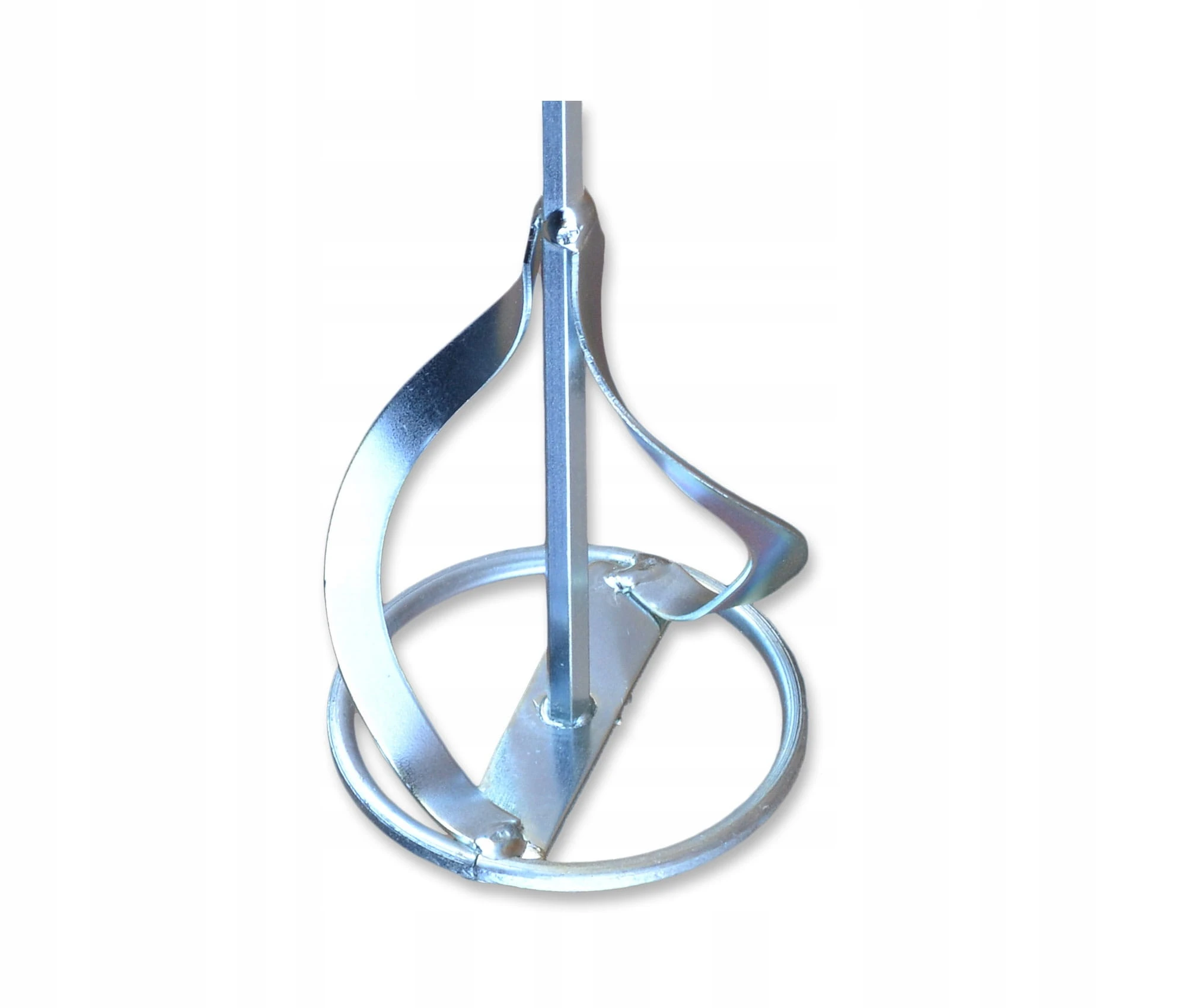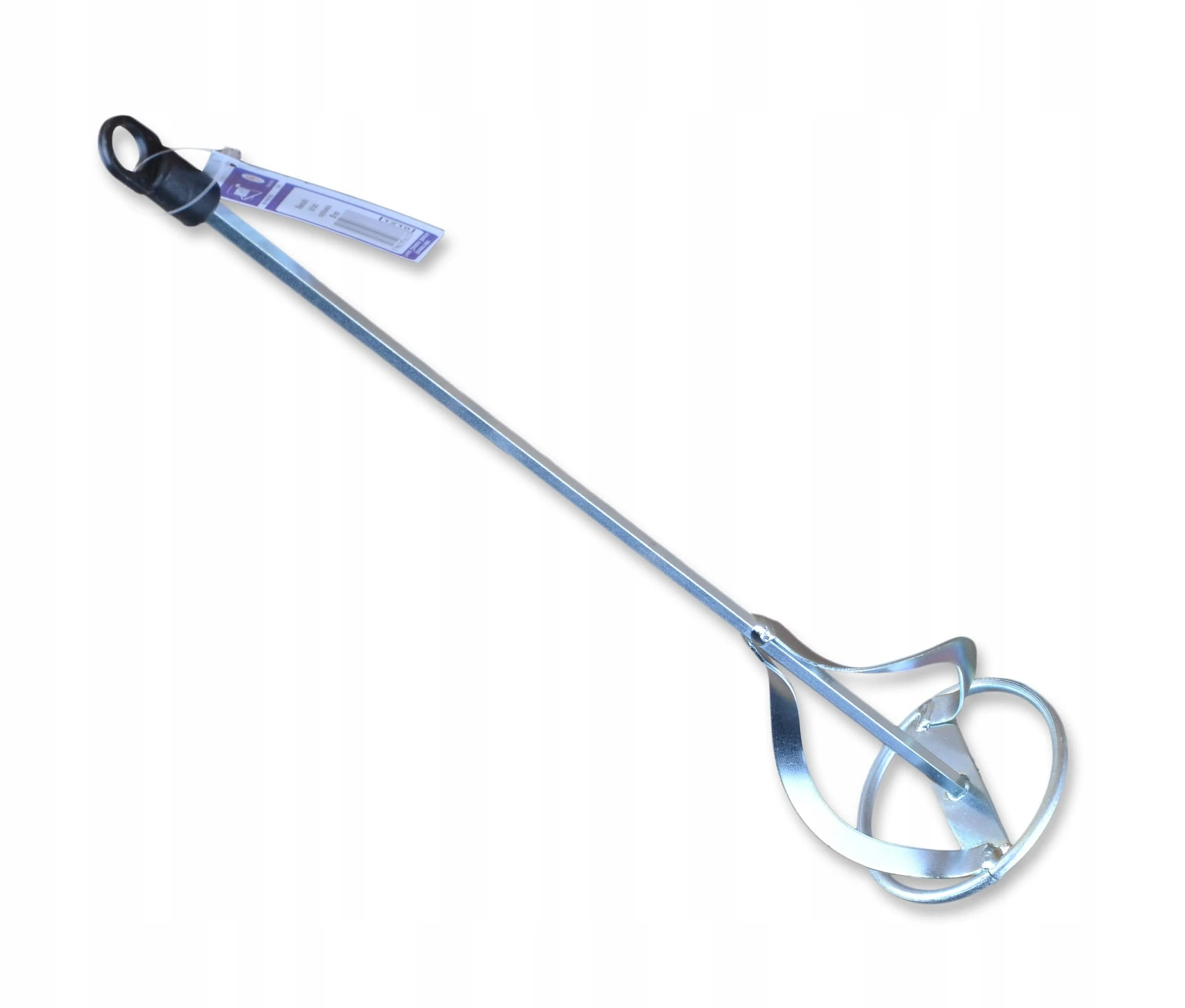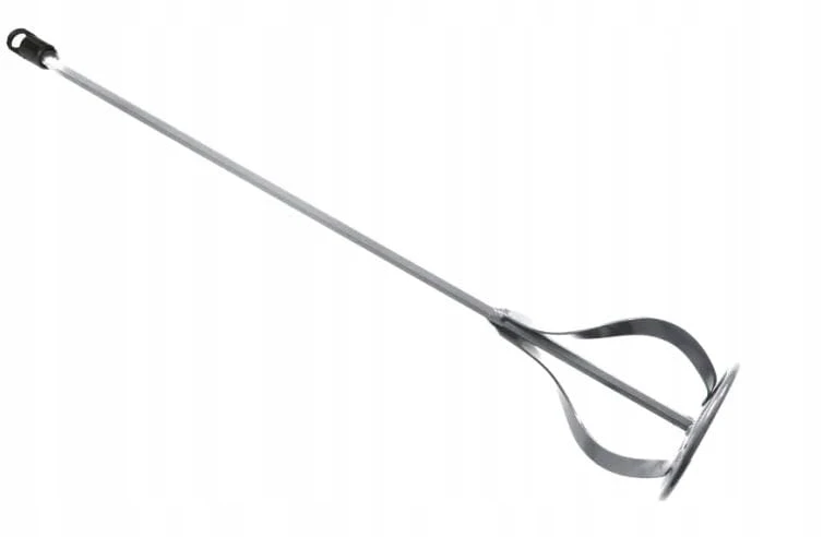 Mieszadło wykonane jest z metalu, część robocza (łopatki i obręcz) osadzona na stalowym sześciokątnym pręcie 8 mm. Zastosowany kształt łopatek mieszadła gwarantuje szybkie oraz dokładne wymieszanie płynnego materiału w pojemniku, zaś znajdująca się u podstawy mieszadła obręcz, zabezpiecza pojemnik przed zarysowaniem (uszkodzeniem) i zanieczyszczaniem masy.