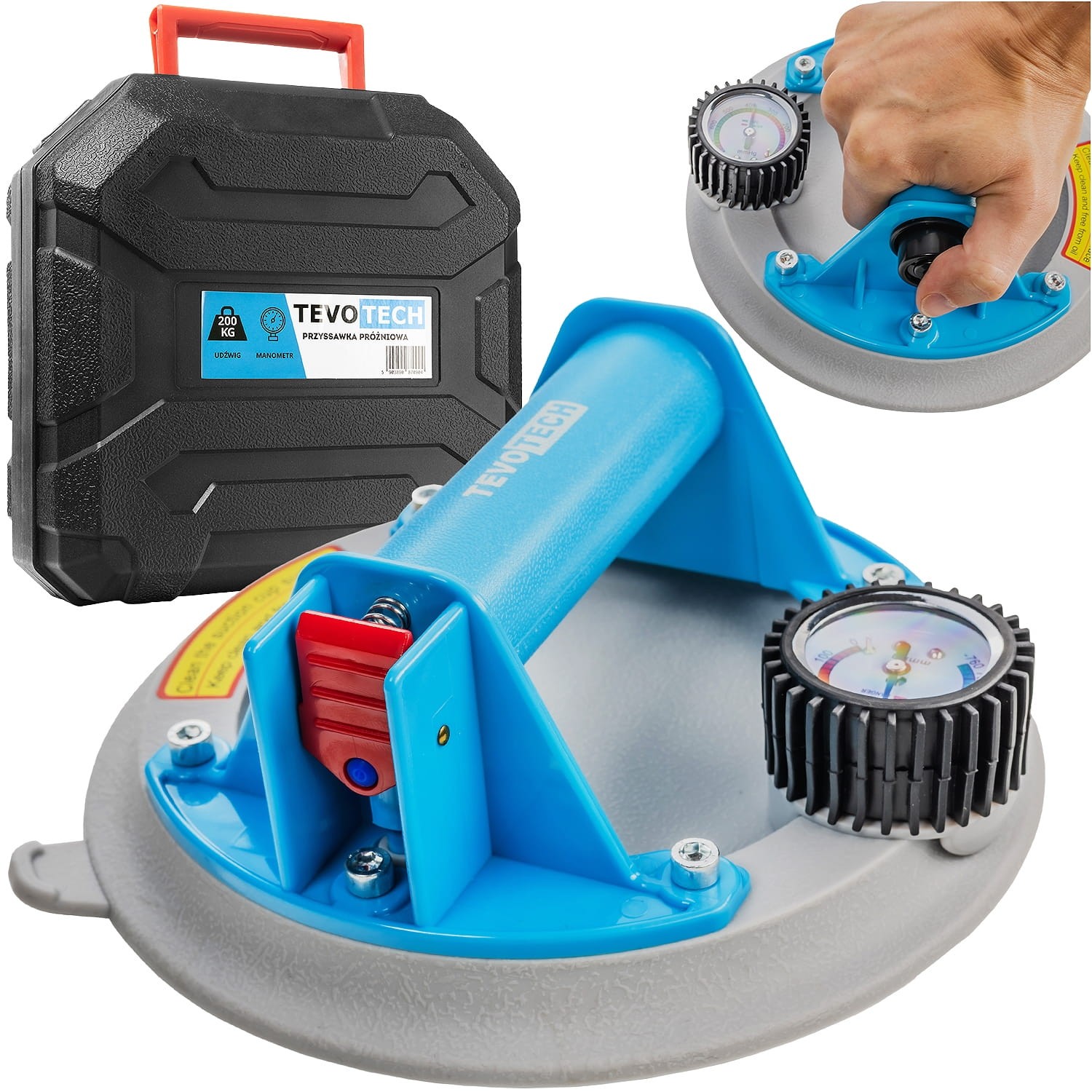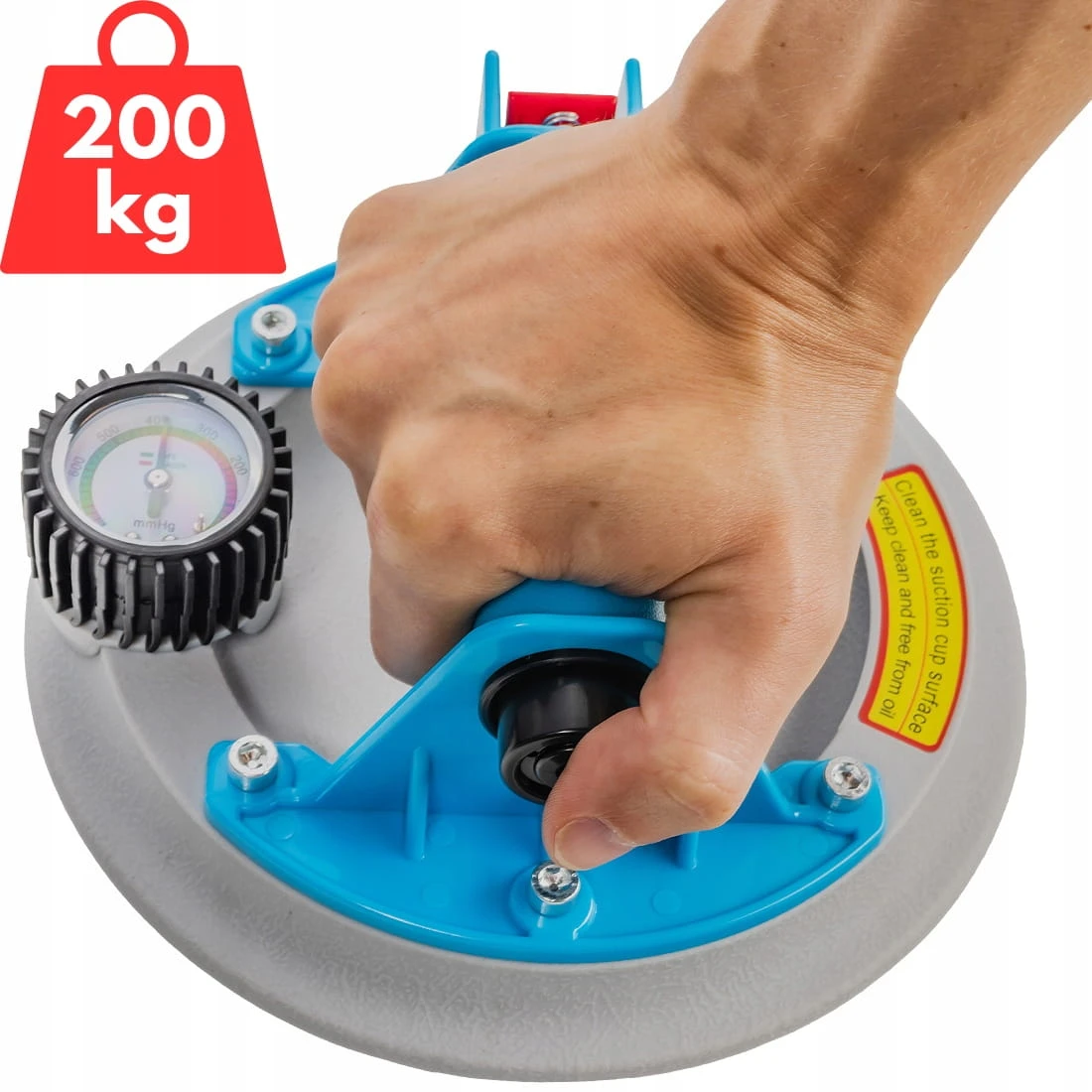 PRZYSSAWKA PRÓŻNIOWA DO PŁYTEK SZKŁA GLAZURY UCHWYT Z MANOMETREM PRO 200KG