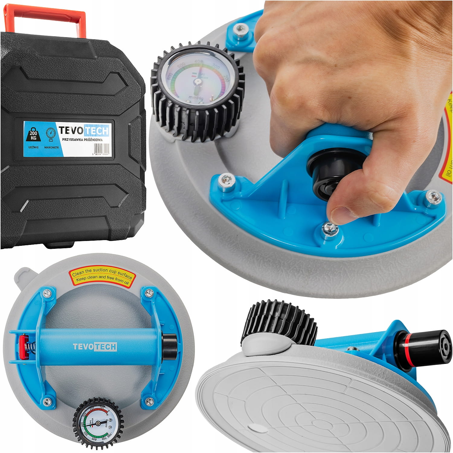 Przyssawka próżniowa TEVOTECH z manometrem – 200 kg udźwigu ?