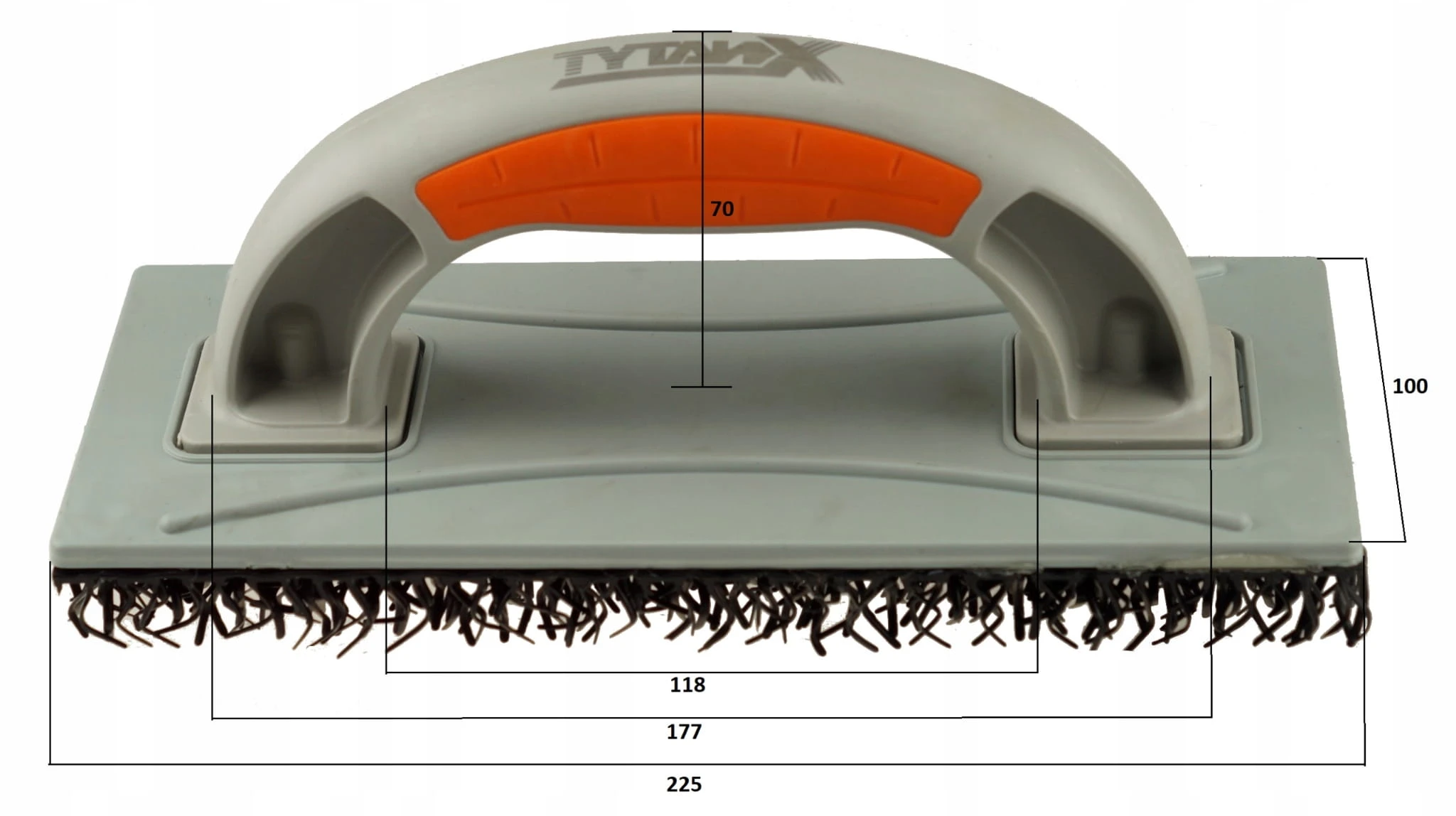 Paca wykonana jest z tworzywa sztucznego odpornego na odkształcenia oraz uszkodzenia mechaniczne. Posiada ergonomiczny, zamknięty uchwyt z bocznymi gumami z logiem TYTANX. Wstawki gumowe to nie tylko element marketingowy, ale przede wszystkim zapewnienie lepszej chwytności narzędzia oraz poprawa komfortu pracy.