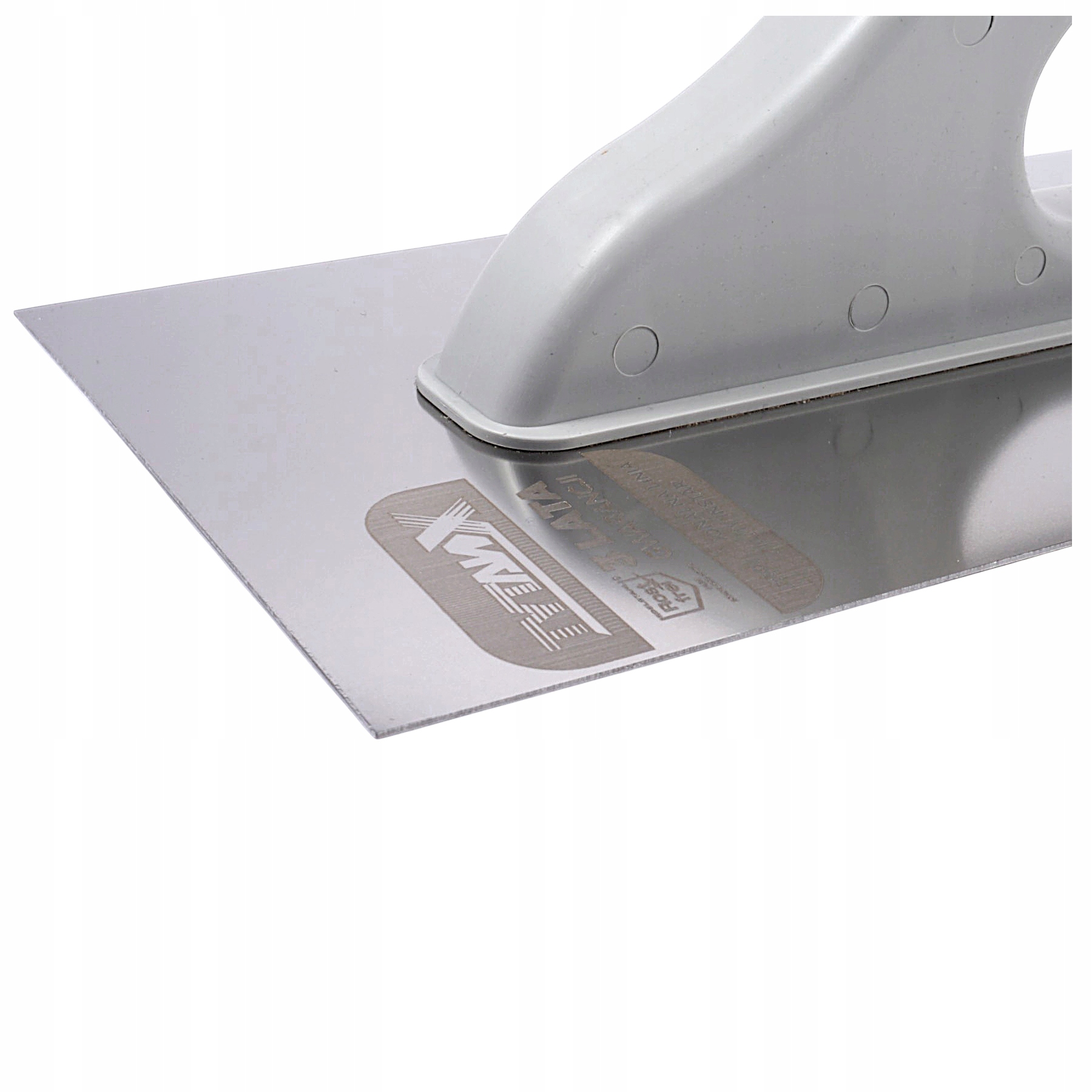 Część robocza pacy wykonana z wysokiej jakości stali nierdzewnej o grubości 0,9 mm. Nowy uchwyt RG1 wykonany z polistyrenu (PS) czyli wytrzymałego polimeru oraz elstomerowych, antypoślizgowych wkładek.