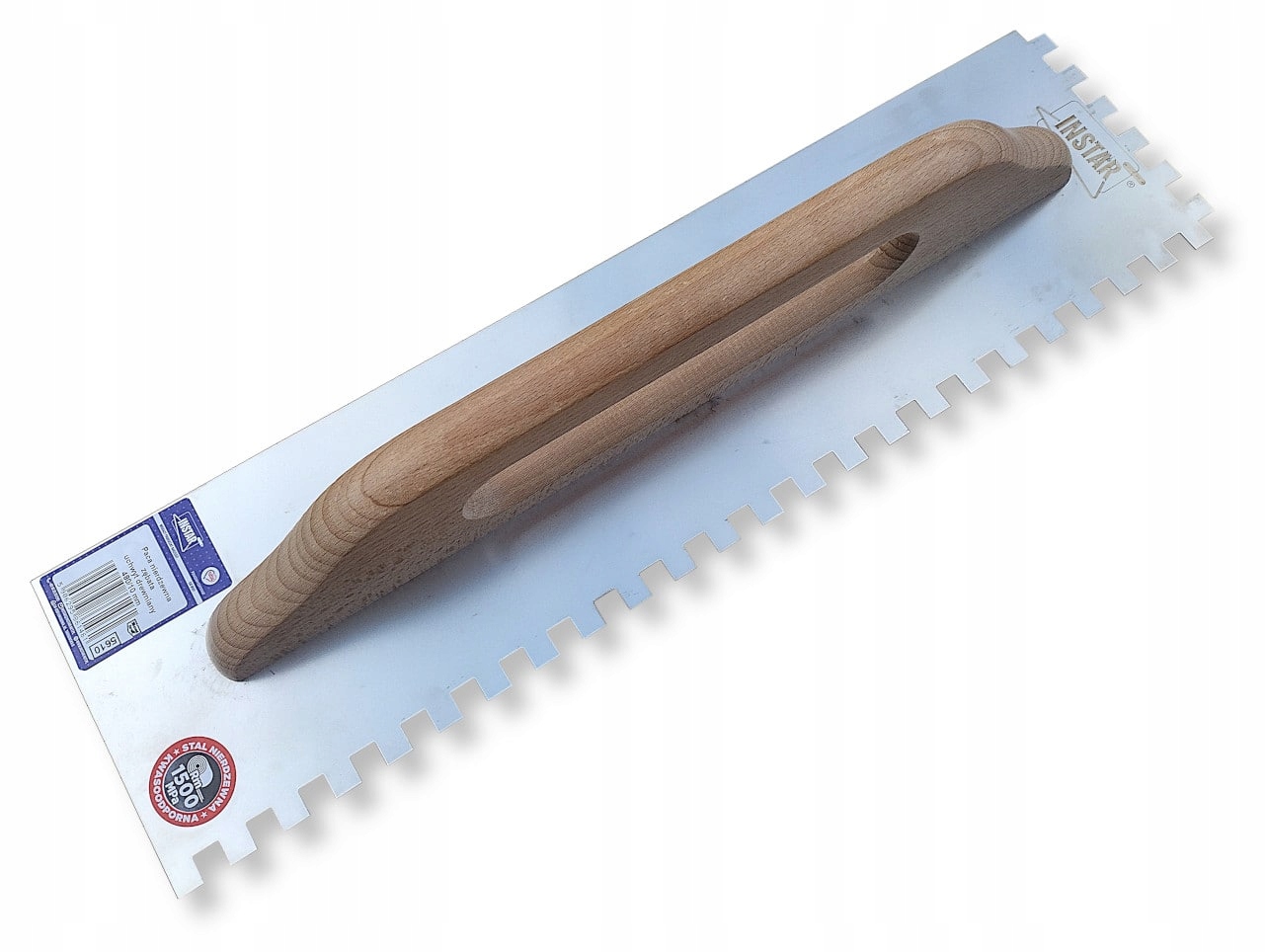 Paca nierdzewna zębata 12x12 mm do mas szpachlowych i klejów - oryginalny produkt od polskiego producenta, firmy INSTAR. Paca (rajberka) przeznaczona jest przede wszystkim do nakładania oraz aplikowania klejów, zapraw budowlanych czy mas szpachlowych.
