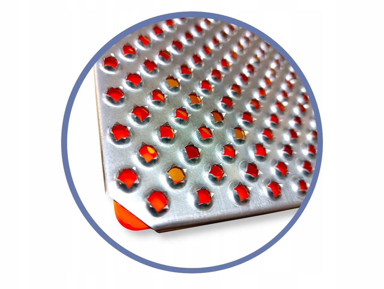 Kratownica, na której zamontowana jest metalowa tarka, posiada duże otwory, przez które przelatuje zdzierany materiał, eliminując efekt zapychania tarki.