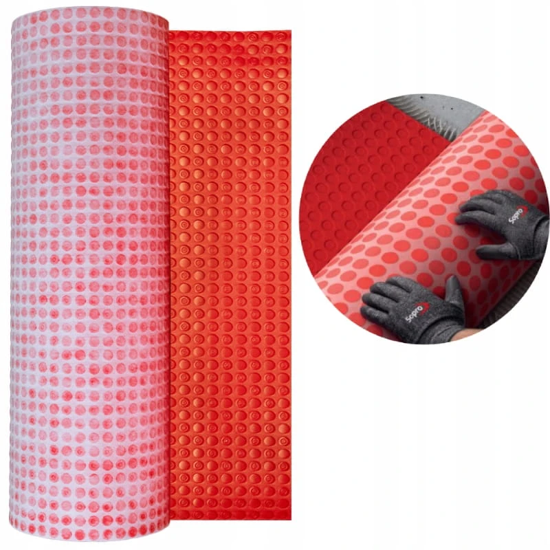 Specjalna mata kompensacyjna, wykonana z wysokiej jakości twardego polietylenu (HDPE) z wyciętymi wgłębieniami, z włókniną nośną z polipropylenu na spodniej stronie.