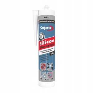Silikon sanitarny Sopro jest gotowym do użycia, utwardzającym się pod wpływem kwasu octowego silikonowym materiałem uszczelniającym, o działaniu hamującym rozwój grzybów, który jest przeznaczony do elastycznego wypełniania spoin łączących i dylatacyjnych w pomieszczeniach sanitarnych, także między okładzinami z płytek a wanną kąpielową, brodzikiem, umywalką lub zlewozmywakiem, muszlą klozetową, pisuarem, itp.