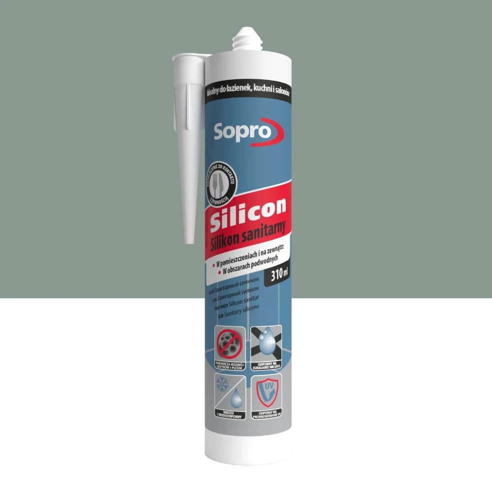 - Silikon sanitarny Sopro jest gotowym do użycia, utwardzającym się pod wpływem kwasu octowego silikonowym materiałem uszczelniającym, o działaniu ograniczającym rozwój grzybów, który przeznaczony jest do elastycznego wypełniania spoin łączących i dylatacyjnych w pomieszczeniach sanitarnych, również między okładzinami z płytek a wanną kąpielową, brodzikiem, umywalką lub zlewozmywakiem, muszlą klozetową, pisuarem, itp.