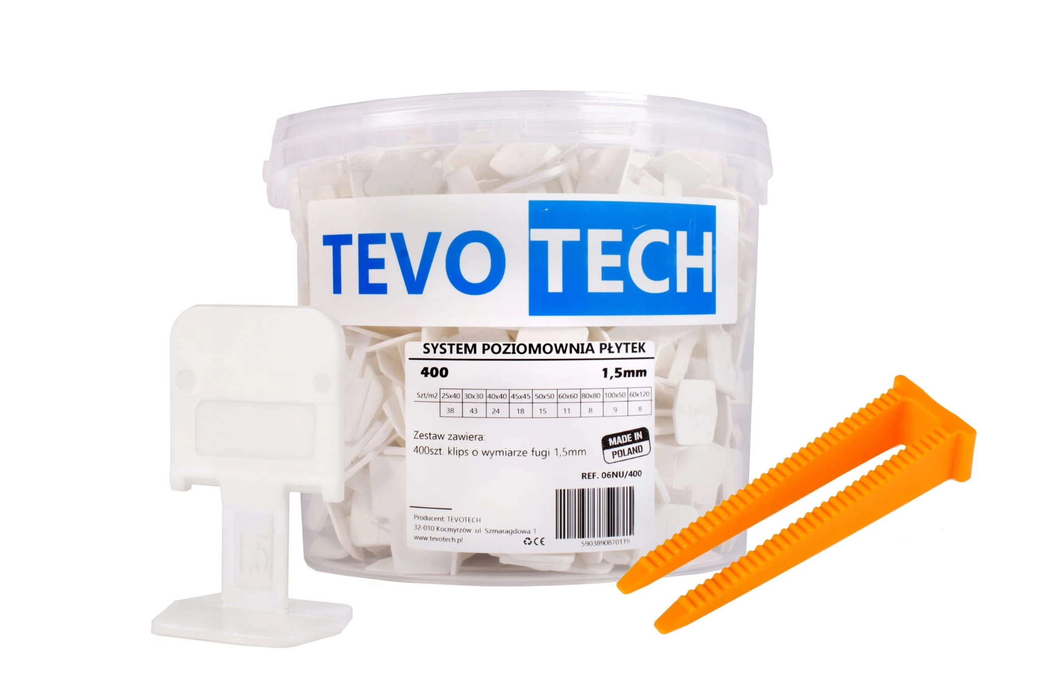 Klipsy, opakowanie 400szt. o minimalnym rozmiarze fugi 1,5mm. + klin 100 szt.