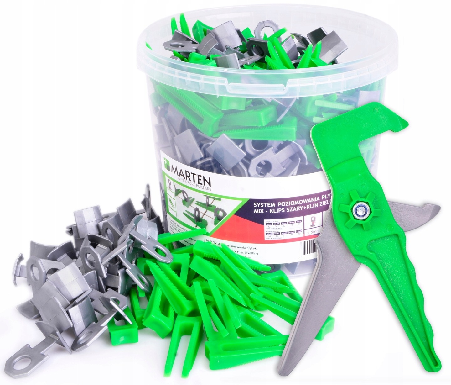 Nowoczesna metoda układania glazury. System Marten-Level eliminuje potrzebę używania dodatkowych narzędzi w celu wypoziomowania płytek. Wykonany z elastycznego tworzywa, wyklucza uszkodzenia glazury na jej narożach. Klipsy działają jako podstawki pod płytki- uzupełnieniem zestawu są kliny o dwóch nóżkach z ząbkami poziomującymi, dociskające glazurę do powierzchni podstawki. Po montażu kliny nadają się do ponownego wykorzystania natomiast klipsy są zrywalne-jednorazowe. System sprawdza się w poziomowaniu kafelków różnego typu, rozmiaru i grubości. Pomaga w szybkim i łatwym ułożeniu płytek, gwarantując oszczędność czasu i podnoszą efektywność pracy.