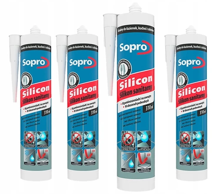 Silikon sanitarny Sopro jest gotowym do użycia, utwardzającym się pod wpływem kwasu octowego silikonowym