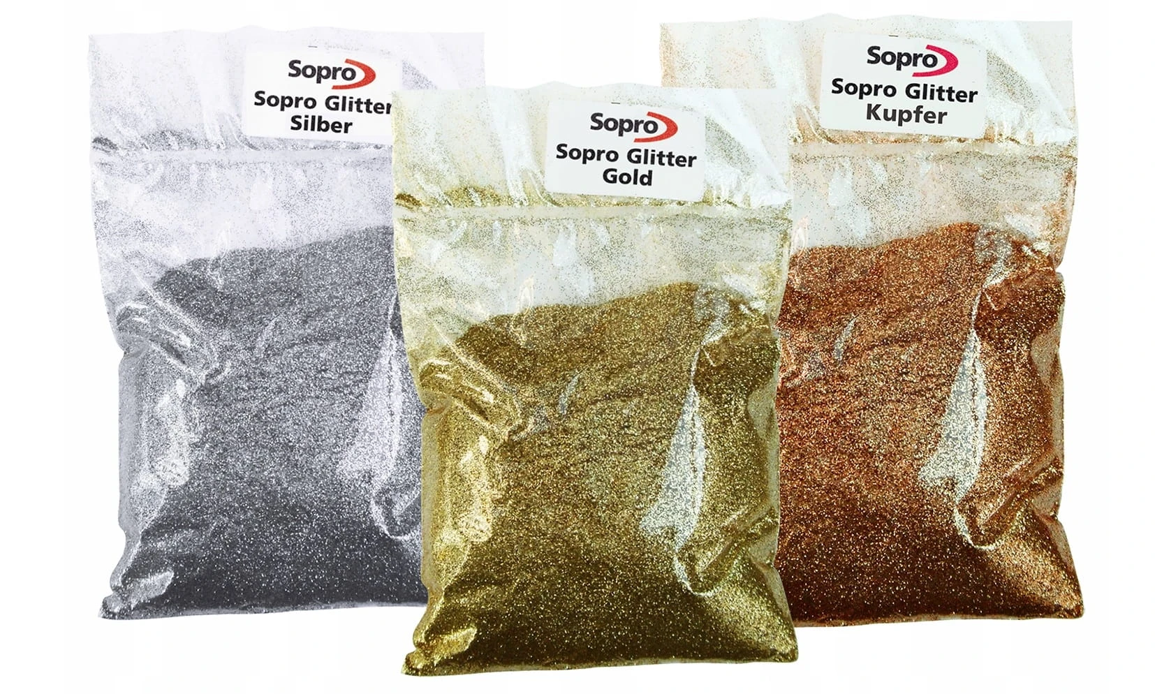 Aby osiągnąć efekt metalicznego połysku do rozmieszanej zaprawy można dodać złoty lub srebrny brokat Sopro w proporcji maksymalnie 1 woreczek (100 g) na opakowanie fugi epoksydowej plus. Po dodaniu brokatu przez co najmniej 2 minuty materiał ponownie starannie wymieszać. Dodatek brokatu zmienia konsystencje, kolor oraz odporność chemiczna fugi. Zalecamy przeprowadzenie próbnego fugowania z wybrana ilością brokatu.