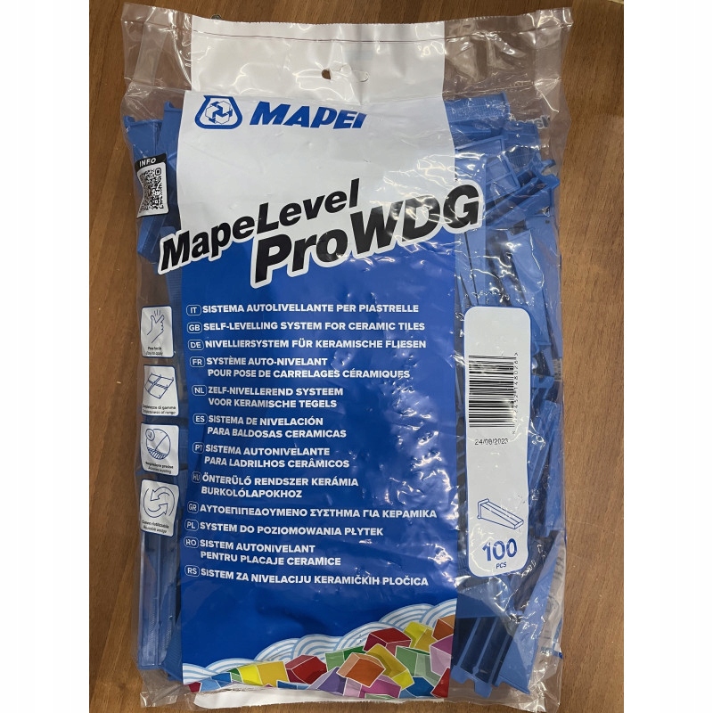 SYSTEM MAPELEVEL PROWDG składa się z klinów MAPELEVEL PROWDG oraz przekładek MAPELEVEL PROWDG SPACER C i MAPELEVEL PROWDG SPACER CH, które należy dobrać w zależności od grubości płytek.
