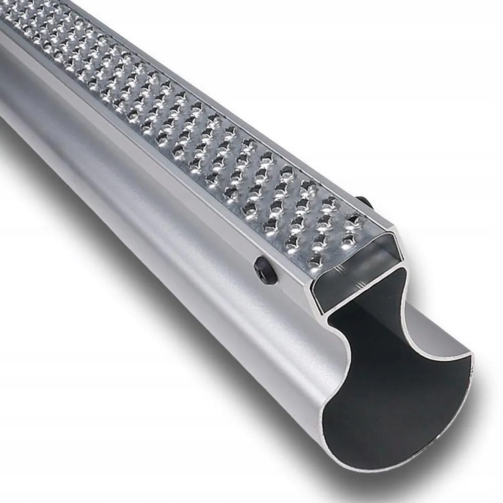 Wykonany z trwałego, anodowanego aluminium profil z wymiennymi modułowymi ostrzami gwarantuje wytrzymałość oraz odporność na ścieranie i zabrudzenia. Dzięki otwartej konstrukcji tarnik nie zapycha się i skutecznie odprowadza urobek podczas pracy.