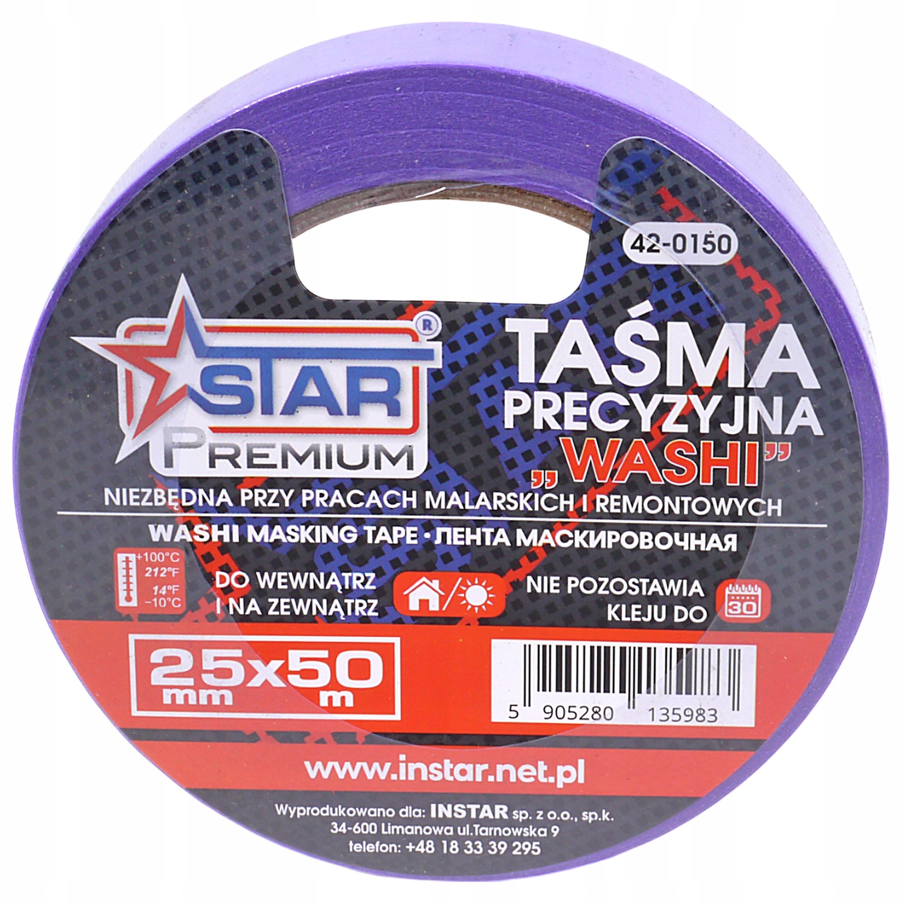 Taśma precyzyjna WASHI PREMIUM malarska bloker 25 mm x 50 m STAR 42-0150