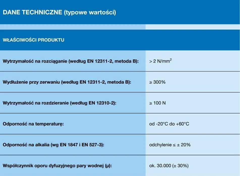 - Rodzaj materiału: elastomer termoplastyczny wzmocniony obustronnie włókniną poliestrową.