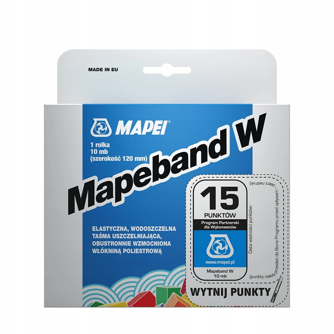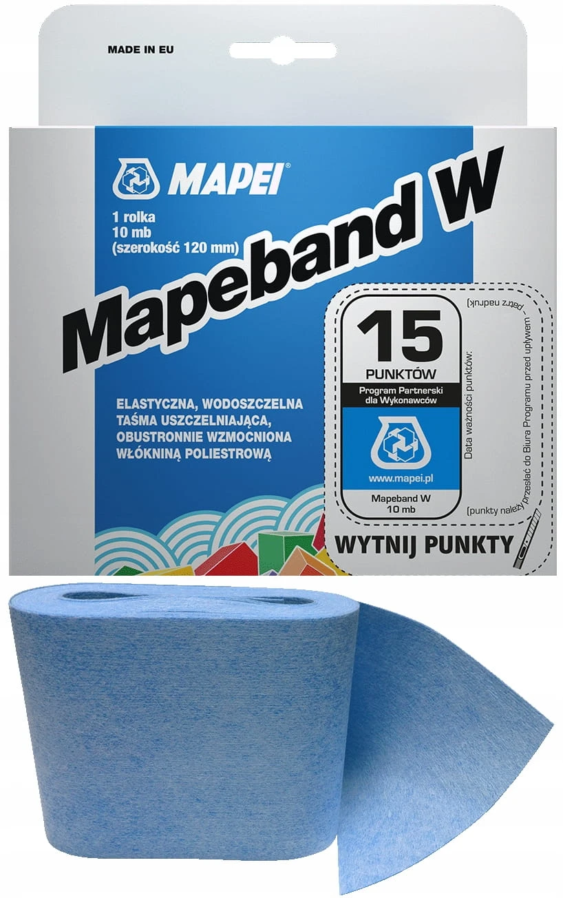 Mapeband W jest wodoszczelną, odporną na alkalia i starzenie taśmą uszczelniającą, wzmocnioną obustronnie włókniną poliestrową. Charakteryzuje się wysoką elastycznością i odkształcalnością, również w niskich temperaturach, a także odpornością na zmienne warunki atmosferyczne. Taśma jest łatwa w montażu - doskonale poddaje się formowaniu.