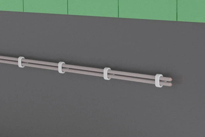 Wykonane z polipropylenu, wysokiej jakości tworzywa sztucznego odpornego na uszkodzenia. Uchwyt stosuje się zazwyczaj do przytrzymania przewodów na ścianie, podczas nakładania tynków, płyt gipsowych lub wykonywania wylewek czy podłóg itp. Sprawdza się zarówno podtynkowo, jak i nadtynkowo. Wyklucza ryzyko uszkodzenia struktury przewodu podczas montażu kabli.