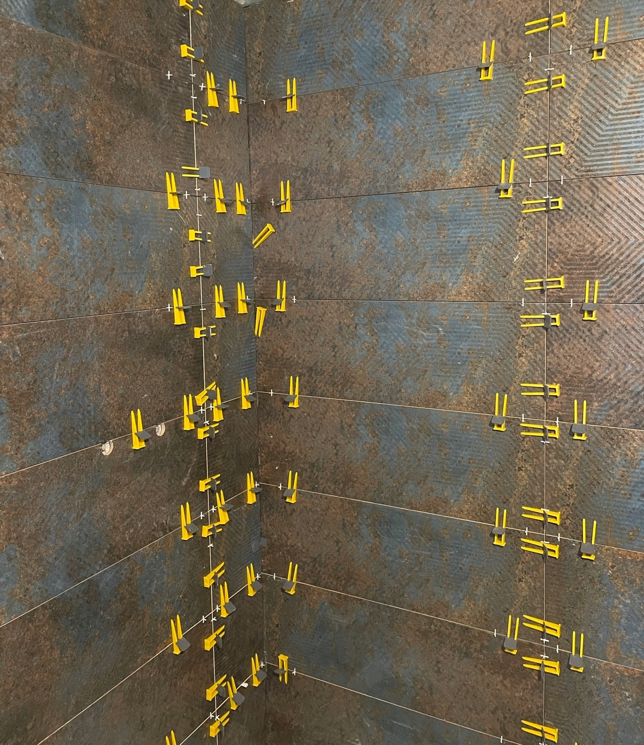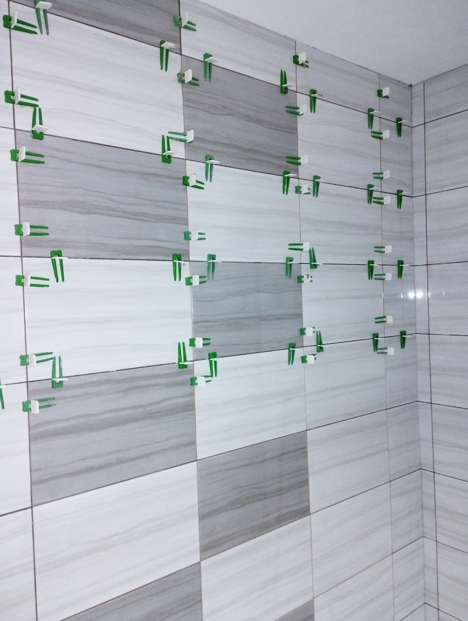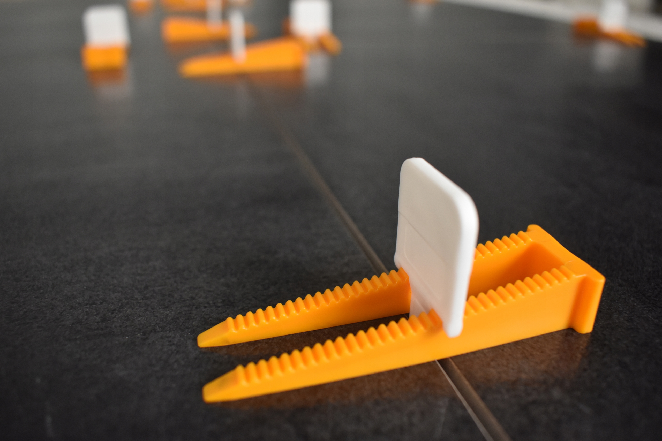 Dzięki klipsom i klinom płytki same się poziomują. Dlatego nawet osoba pierwszy raz kładąca płytki uzyska idealnie równą powierzchnię.