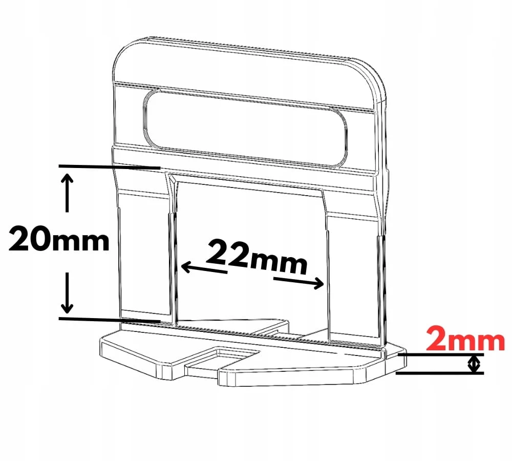 -Grubość podstawy klipsa: 2 [mm] nadaje sztywność podstawy pod płytką nawet przy mocnym zaciskaniu.