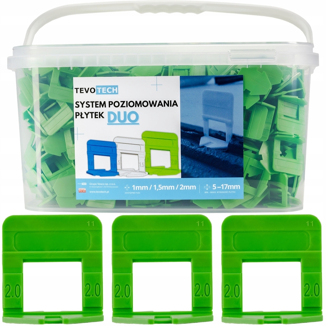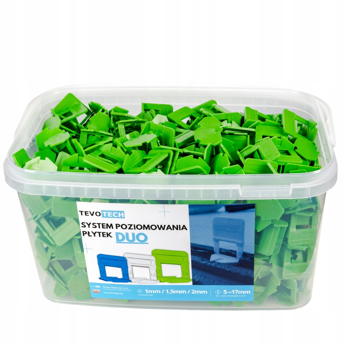 ✅500szt. klipsów o rozmiarze fugi 2,0mm pakowanych w wytrzymałe 10L wiadro.